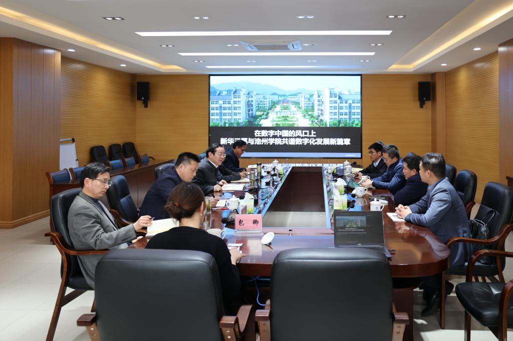郭俊礼对我校的热情接待表示感谢,简要介绍了新华三集团的基本概况、主要业务以及与院校开展合作的情况,希望能以此次洽谈为契机,进一步加强与池州学院的合作交流,在教学科研、人才培养、师资队伍、实验实训等方面为学校提供更好的服务。