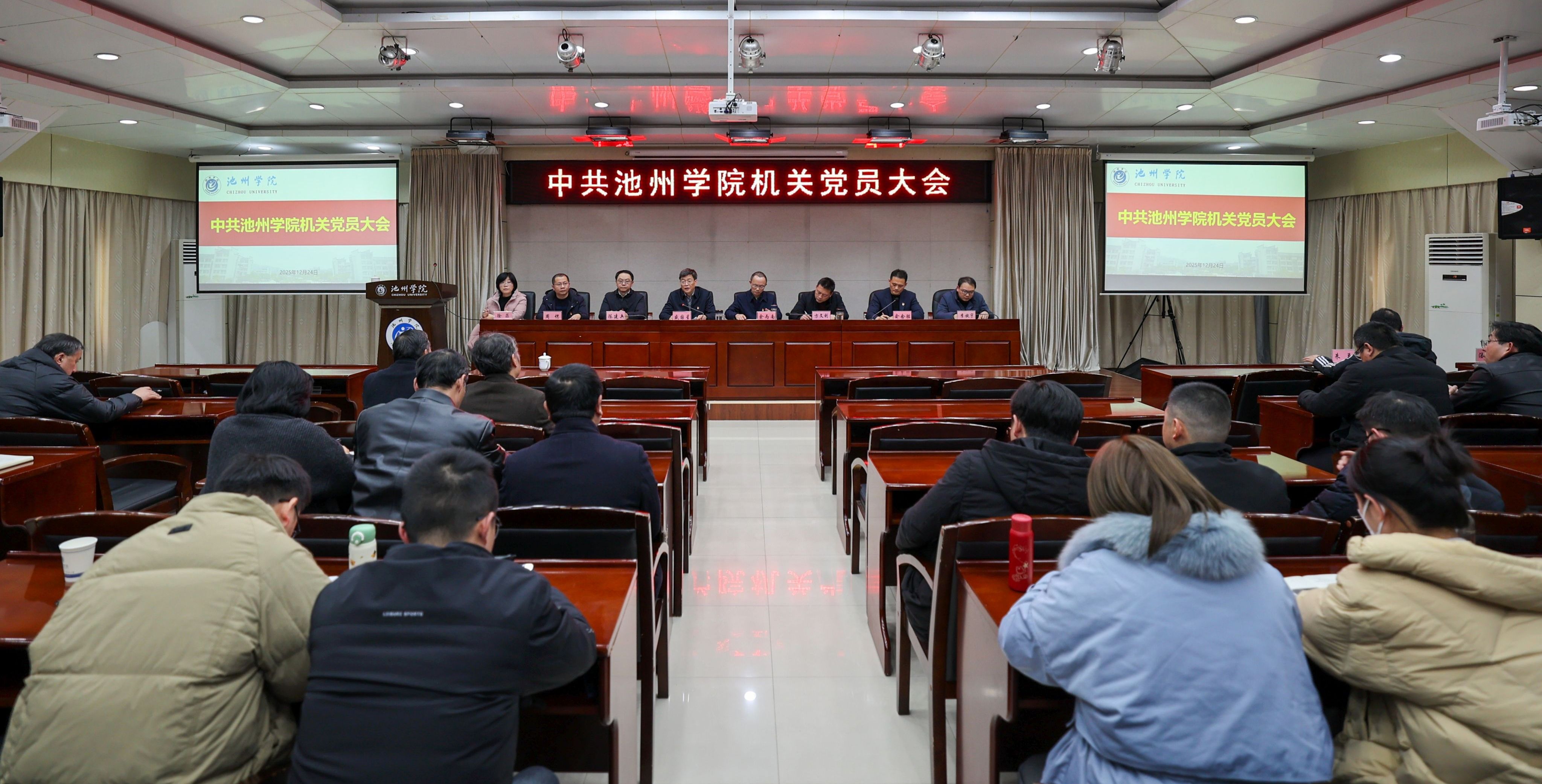 12月24日下午,学校机关党委党员大会在办公南二楼会议室顺利召开。会议审议通过了机关党委工作报告,选举产生了新一届机关党委。校党委书记王峰,校党委副书记、院长王先柱,党委副书记盛国星,党委委员、副院长阳光宁、吕刚、张赛、李明玲,党委委员、纪委书记、监察专员朱为民以普通党员身份出席会议。