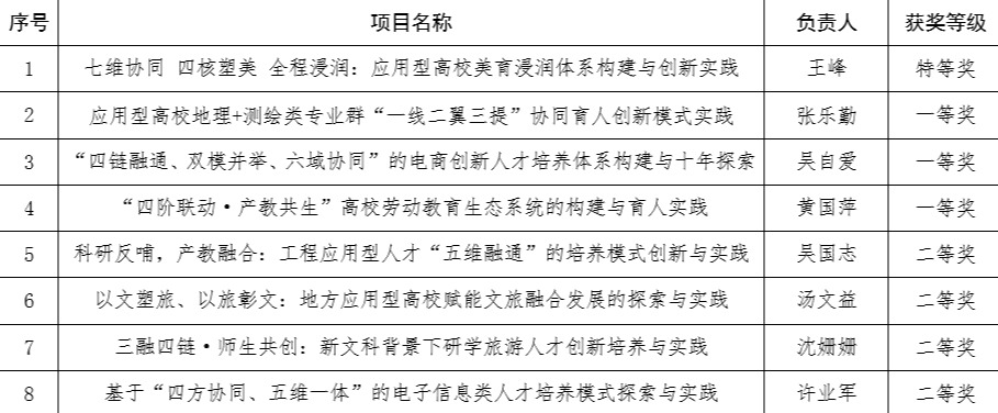 近日,安徽省教育厅公布了2025年省级教学成果奖获奖名单。学校取得优异成绩,申报的8项教学成果全部获奖,其中特等奖1项、一等奖3项、二等奖4项,在省属本科院校中名列前茅。
