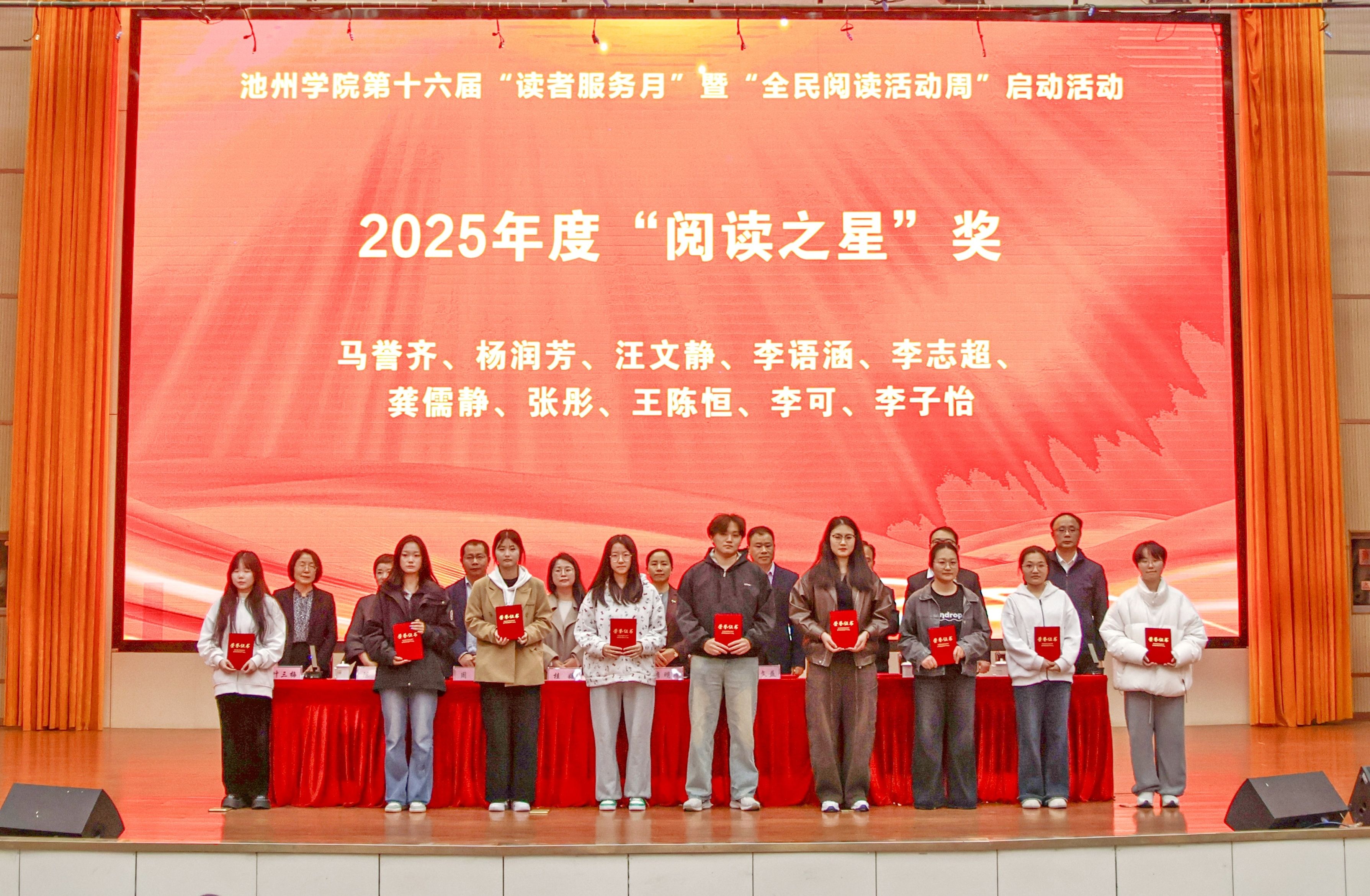 4月22日,在第31个“世界读书日”来临之际,池州学院第十六届“读者服务月”暨“全民阅读活动周”启动活动在博古礼堂举行。校党委委员、副院长李明玲出席并讲话。校党委委员、宣传部部长汤文益,学生处、教务处、校团委、图书馆等部门主要负责人,二级学院分管学生工作负责人、团委书记、师生代表及受表彰师生、受邀嘉宾共400余人,共同见证这场阅读文化盛宴的启幕。