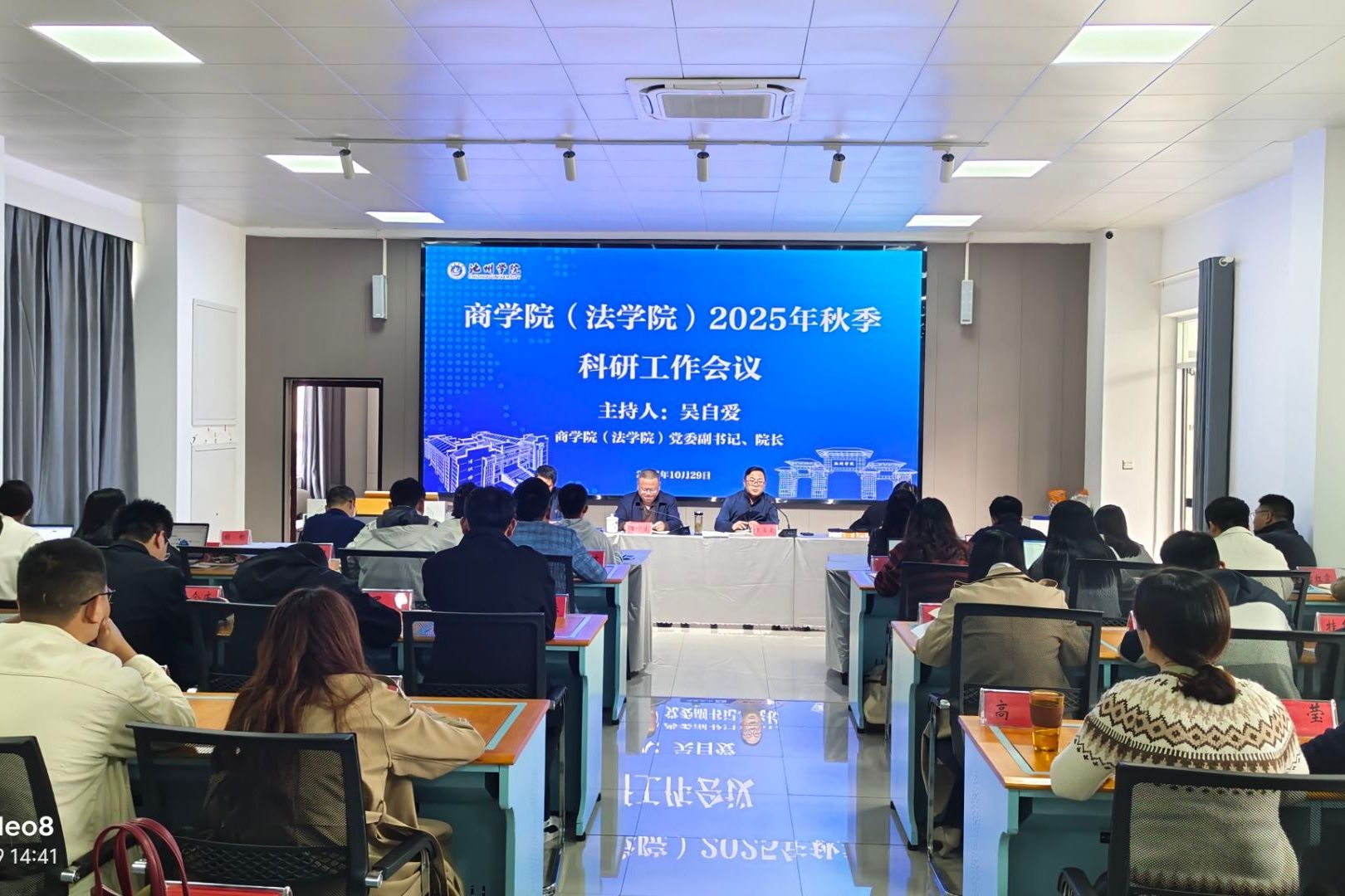 10月29日下午,学院在博识楼北401会议室召开2025年秋季科研工作会议。学院院长吴自爱主持会议,党政领导班子成员、全体行政人员、各系主任及全体教职工参加会议。