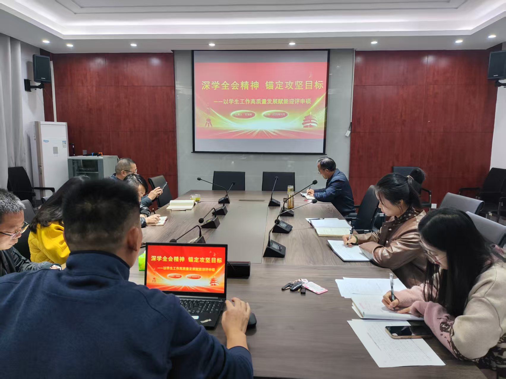 为深入学习贯彻党的二十届四中全会精神,锚定学校“申硕迎评”中心任务,11月6日,学生处党支部在易班会议室召开党员大会。全体党员参加,党支部书记洪为宝主持会议。