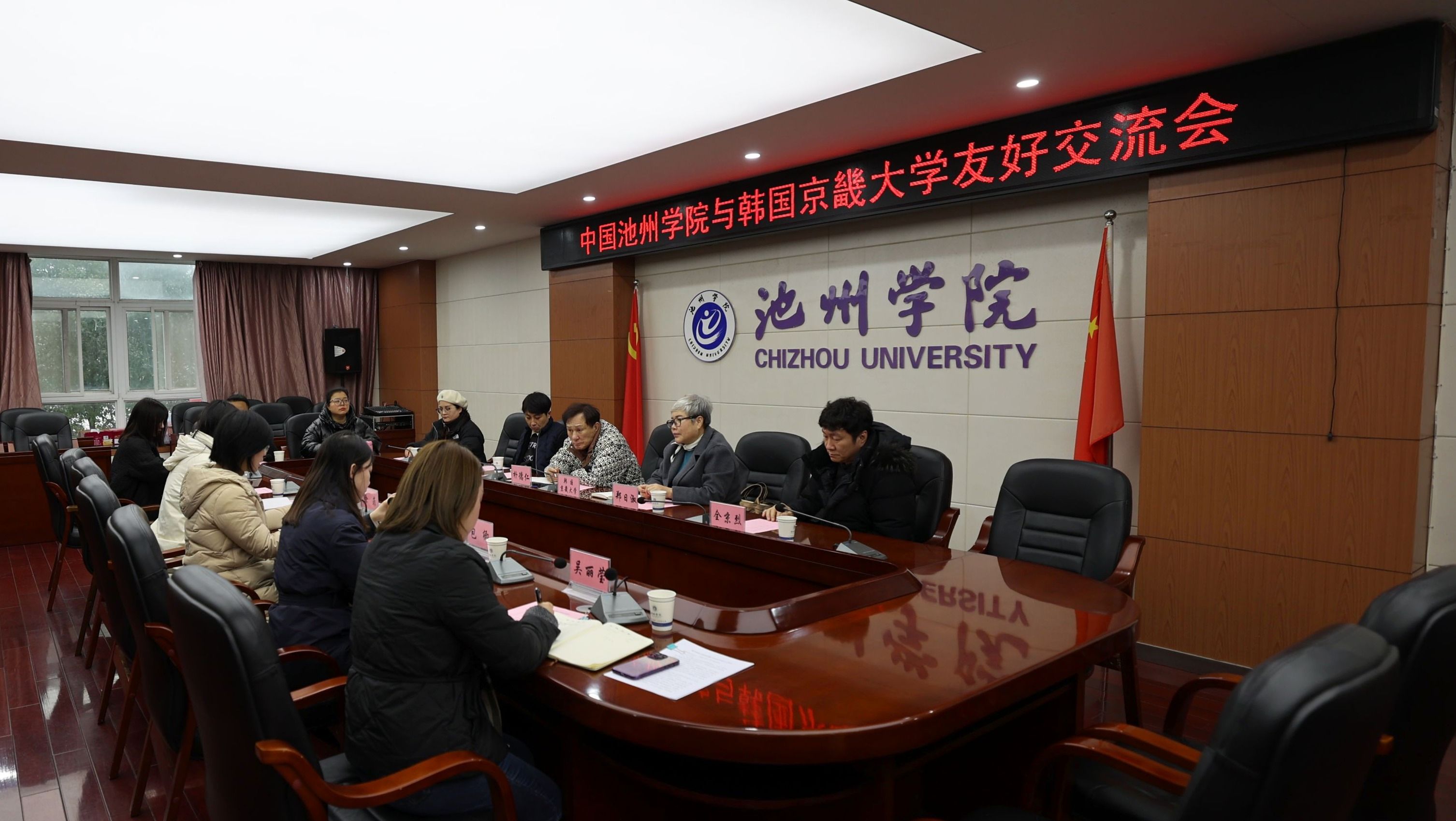 1月20日下午,国际交流与合作处与韩国京畿大学代表团在行政北楼三楼会议室举行友好交流会。